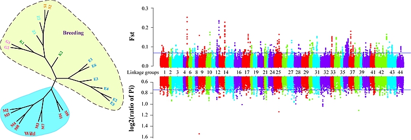 本研究还对22个野生和养殖的凡纳滨对虾个体进行了重测序,获得了大量的SNP分子标记,为对虾的遗传育种工作提供了宝贵的资源。此外,通过选择纯化分析,研究人员还找到了对虾基因组上14个受选择的区域和28个受选择的基因,它们可能与对虾养殖环境适应有关。
