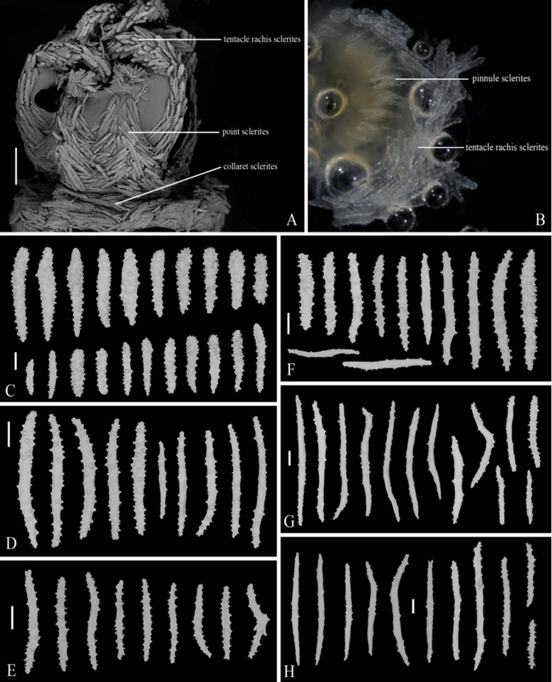 近日,《海洋科学前沿》(Frontiers in Marine Science, JCR 1区)在线发表了海洋大科学中心海洋生物分类与系统演化领域的最新研究成果。研究采用经典分类学与分子系统学方法相结合,对采自西太平洋马里亚纳海沟与卡罗琳洋脊交联区4座海山的紫柳珊瑚科进行了系统研究,发现并描述三个新物种,分别是海洋所紫柳珊瑚 Victorgorgia iocasica Li, Zhan & Xu, 2020、簇生紫柳珊瑚 Victorgorgia fasciculata Li, Zhan & Xu, 2020和扇形紫柳珊瑚 Victorgorgia flabellata Li, Zhan & Xu, 2020。