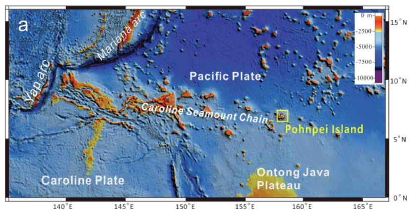 国际知名地学期刊Geochimica et Cosmochimica Acta (Nature Index) 近日在线刊发了海洋大科学中心张国良研究团队关于深部碳循环与西太平洋海山链火山岩成因关系的论文Evidence for the essential role of CO2 in the volcanism of the waning Caroline mantle plume,报导了来自“俯冲-再循环”来源的碳酸岩熔体在穿过巨厚太平洋岩石圈过程中经历的二阶段演化规律,并估算了地幔来源的原始碳酸盐质熔体二氧化碳(CO2)含量。