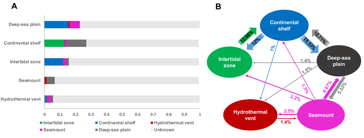 近日,Deep-sea Research Part I和Continental Shelf Research发表了海洋大科学中心徐奎栋研究团队关于真核微生物多样性与地理分布研究的系列成果。该研究利用eDNA和Metabarcoding技术手段,解析了海洋水体与沉积物中真核微生物群落的连通机制,阐释了近岸到深海底栖真核微生物地理分布特征及源汇关系。