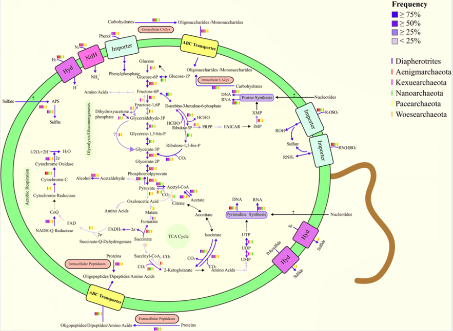 深海热液DPANN古菌物质代谢和元素循环模式图