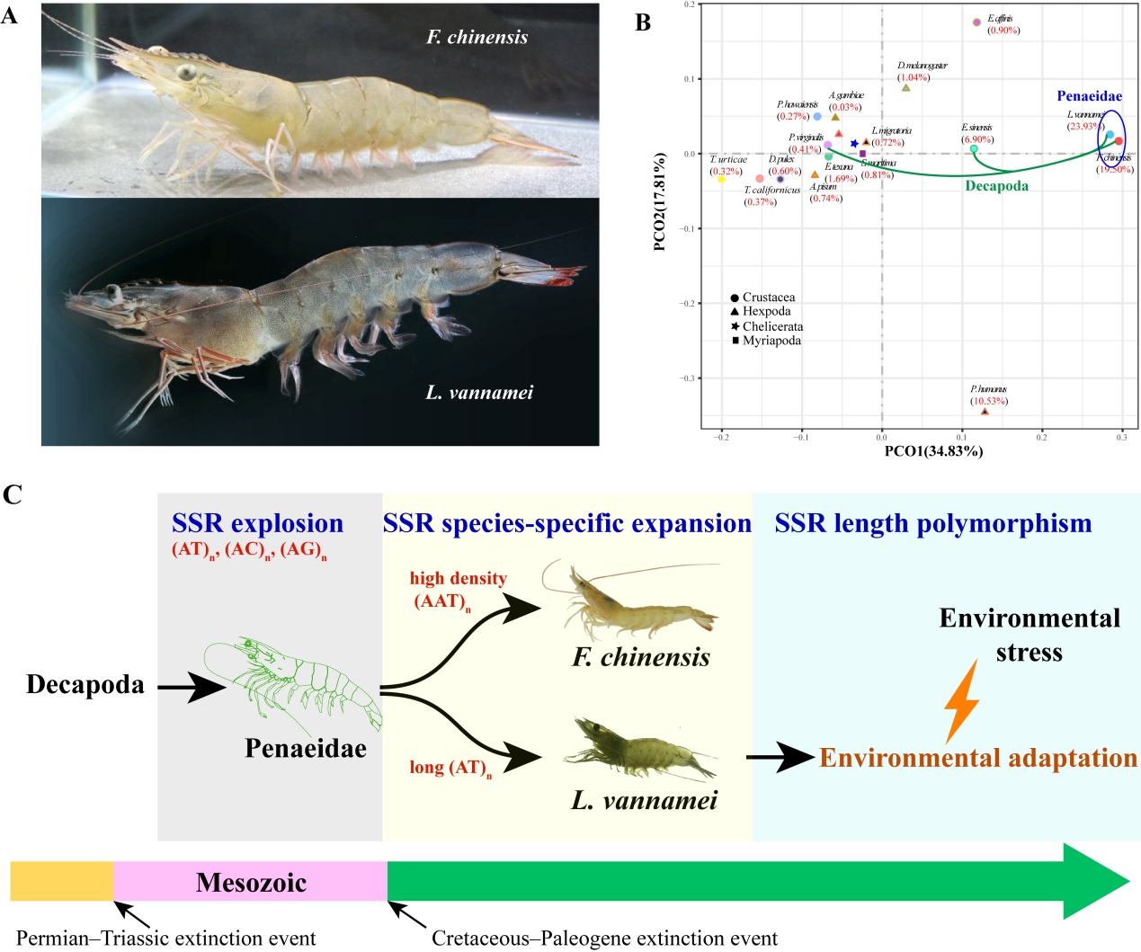 该成果为阐明生物体内SSR的功能和甲壳动物对环境的适应进化研究提供了新的线索,也为对虾基因组育种和分子改良提供了重要的理论基础和数据支撑。