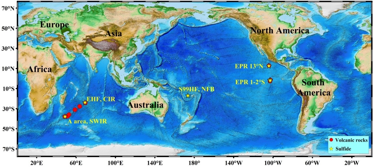 近日,国际学术期刊Marine Geology刊发了题为“Iron, copper and zinc isotopic fractionation in seafloor basalts and hydrothermal sulfides”的文章,报道了海洋大科学中心曾志刚研究团队与比利时布鲁塞尔自由大学和英国国家海洋中心的合作研究成果,分析了东太平洋海隆、印度洋脊和西太平洋弧后盆地中玄武岩和硫化物的铁、铜和锌同位素组成。