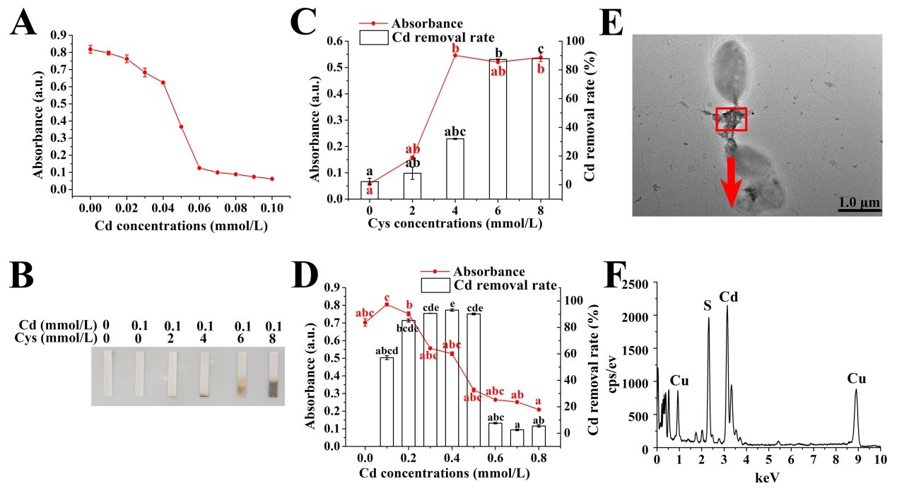图1 半胱氨酸能有效提升深海假单胞菌形成硫化镉颗粒及镉耐受能力