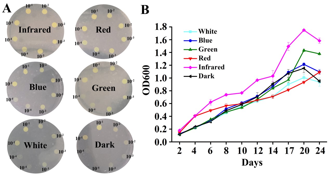 Ge Liu, Yeqi Shan, Rikuan Zheng, Rui Liu, Chaomin Sun*. Growth promotion of a deep-sea bacterium by sensing infrared light through a bacterio phytochrome photoreceptor. Environmental Microbiology, 2021