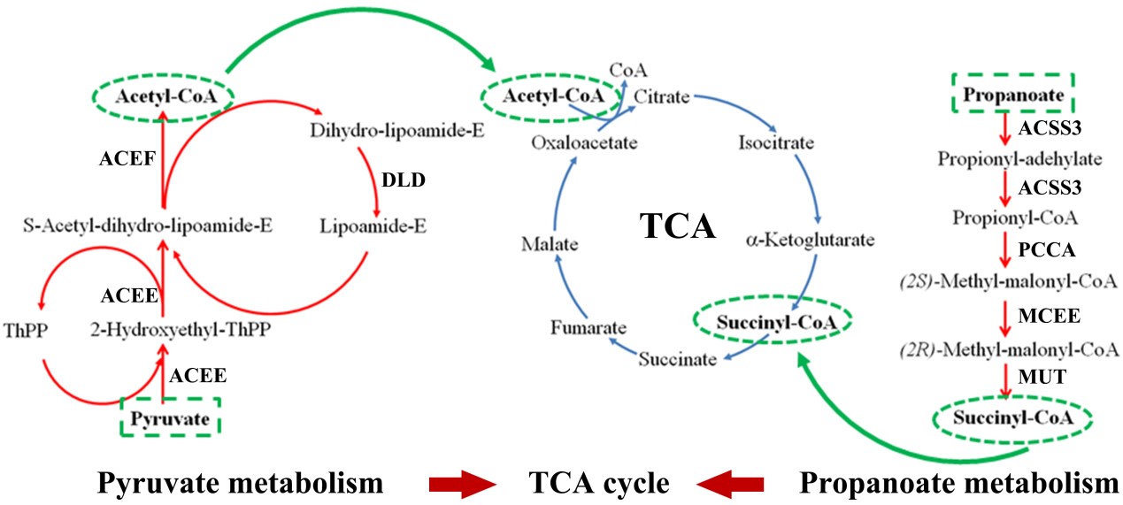 围绕如上科学问题,孙超岷团队基于“科学”号2018年从深海热液口附近采集的沉积物,采用红外光富集培养技术从沉积物样品中获得了一株正黄胞球菌Croceicoccus marinus OT19。研究发现,相比于其它类型的光(蓝光、绿光、红光等),该菌株在红外光(940 nm)照射下可获得最快生长速度。但基因组测序表明,该菌株不包含叶绿素合成通路及视紫红质编码基因,不属于常见的光能利用类型。结合蛋白质组及其他手段证实细菌光敏色素在红外光促生长过程中发挥关键作用,而且红外光可显著促进该菌株的丙酮酸和丙酸代谢。生理学实验进一步证实红外光可促进丙酮酸和丙酸向乙酰辅酶A和琥珀酰辅酶A的转变过程,进而显著增强了三羧酸循环通路及能量产生,最终促进了菌株的快速生长。该研究成果为认知深海微生物的光能利用机制提供了新的视角,并为深入开展高温热液生态系统特殊能量代谢机制及低能量光能利用研究提供了范例。
