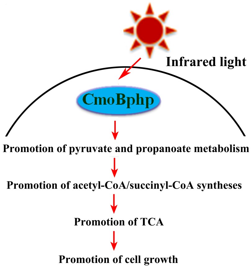 红外光促进深海热液细菌Croceicoccus marinus OT19生长模式图