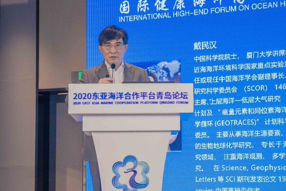 下午,由青岛市人民政府主办,青岛西海岸新区管委和中国科学院海洋大科学研究中心共同承办的国际健康海洋高端论坛召开,本次论坛的主题为“保障海洋健康,构建海洋命运共同体”,采取线下会议+线上剪辑点播相结合的形式举办。作为2020东亚海洋合作平台青岛论坛分论坛之一,国际健康海洋高端论坛邀请国内外海洋领域知名院士、专家、学者及国际组织代表共70余名嘉宾参会,围绕健康海洋重大需求,共商国际海洋健康发展大计,深入探讨保障海洋健康新模式、新路径和新愿景,推动全球海洋保护和可持续利用,构建海洋命运共同体。山东省海洋局燕东副局长,青岛西海岸新区邵睿副区长出席会议并致辞,联合国教科文组织政府间海洋学委员会西太平洋分委会执行秘书朱文熙先生发来视频致辞。
